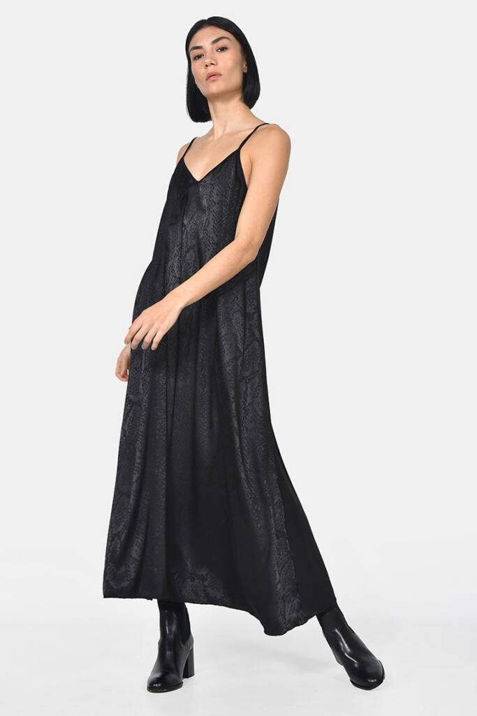 xanashop – Μαύρο σατέν φόρεμα με τιραντάκια